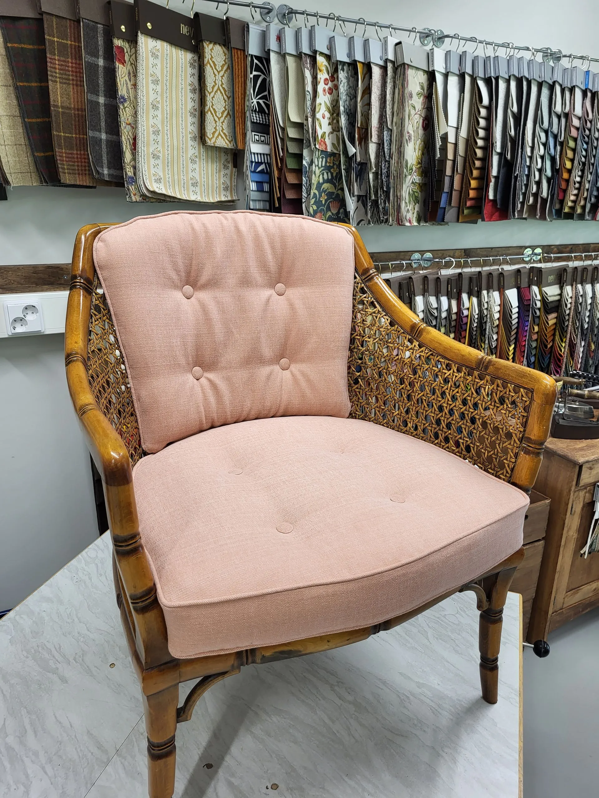 Verhoomolla on myynnissä verhoilutarvikkeita alan harrastajille.